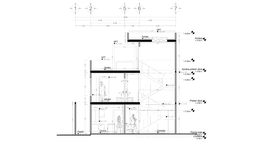 NIVS reduce el tiempo invertido en colocar niveles manualmente, mejora la consistencia gráfica del plano y facilita la referencia correcta a bancos de nivel en elevaciones, secciones y plantas.